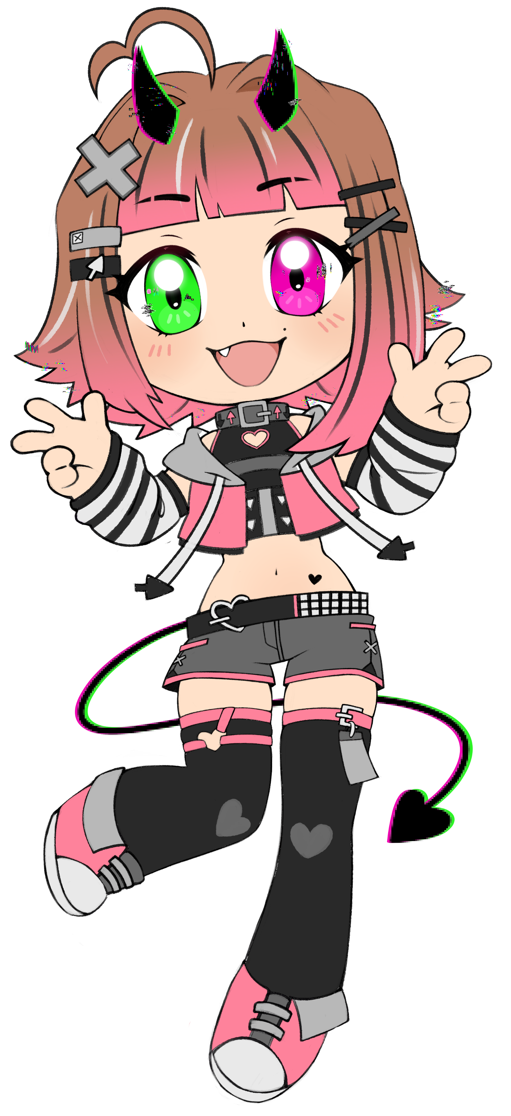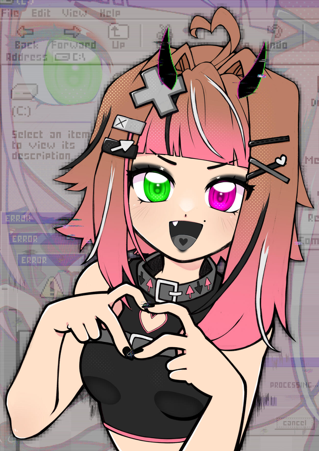 ❤︎ their horns and tail can also be any shade of pink, black, white, or grey, and so can the gradient "virus" on their feet and the blush on their cheeks.
