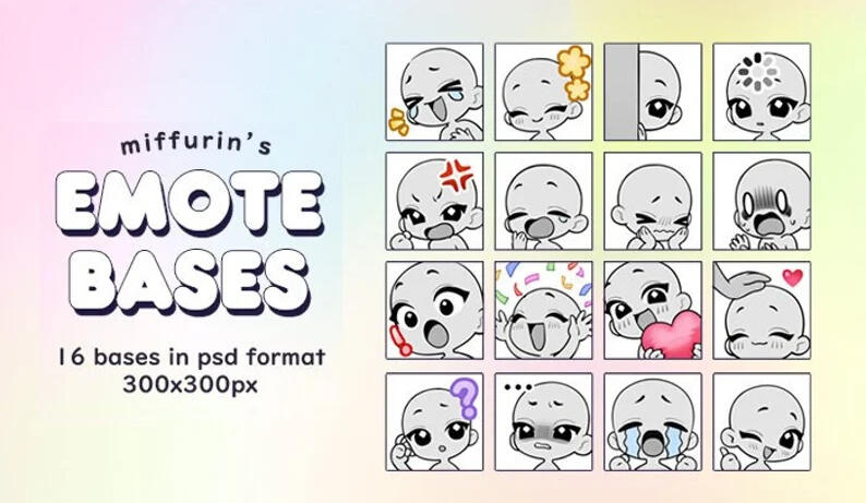the emote bases i currently use are by etsy user miffurin. all editing to the bases is done by me. they can be purchased at etsy.com/shop/miffurin